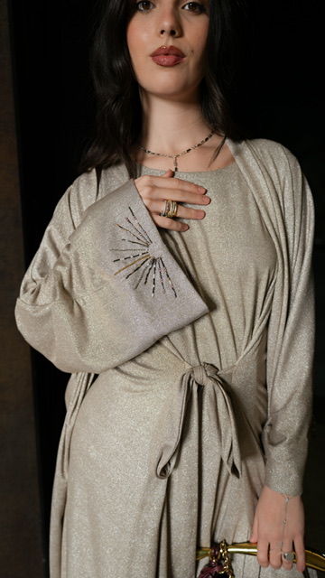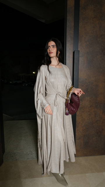 bisht and inner dress, dress can be tied in front or back.